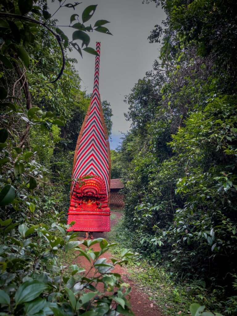 Here, divinity is experienced not in silence, but in the fire, drumbeats, and dance of Theyyam.